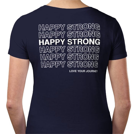 Women’s Happy Strong V-Neck Tshirt (Navy)
